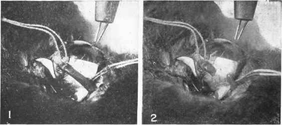 |  | No. 1.-The inferior ob lique muscle has been ex posed and two sutures are attached to it. Electrical stimulation of the eyeball produces accommodation, as demonstrated by simul taneous   retinoscopy. No. 2.-The muscle has been cut. Electrical stim ulation produces no ac commodation. No. 3.-The muscle has been sewed together. Elec trical stimulation produces normal accommodation. | ||
