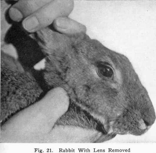 had a lens. The same experiment with the same result was performed on a number of other rabbits, on dogs and on fish. The obvious conclusion is that the lens is not a factor in accommodation. |