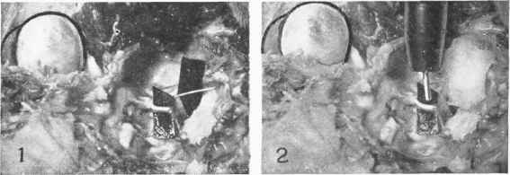 No. 1.-Both nerves have been exposed near their origin in the brain, and a strip of black paper has been inserted beneath each to render it visible. The fourth nerve is the smaller one. The superior oblique muscle has been advanced by a tucking operation, as this muscle is always rudimentary in cats, and unless its pull is strengthened, accommodation cannot be pro duced in these animals. Stimulation of either or both nerves by the faradic current produced accommodation.