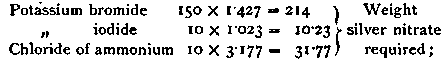 ![]() or the total quantity of silver nitrate required for full conversion, 256 grains.